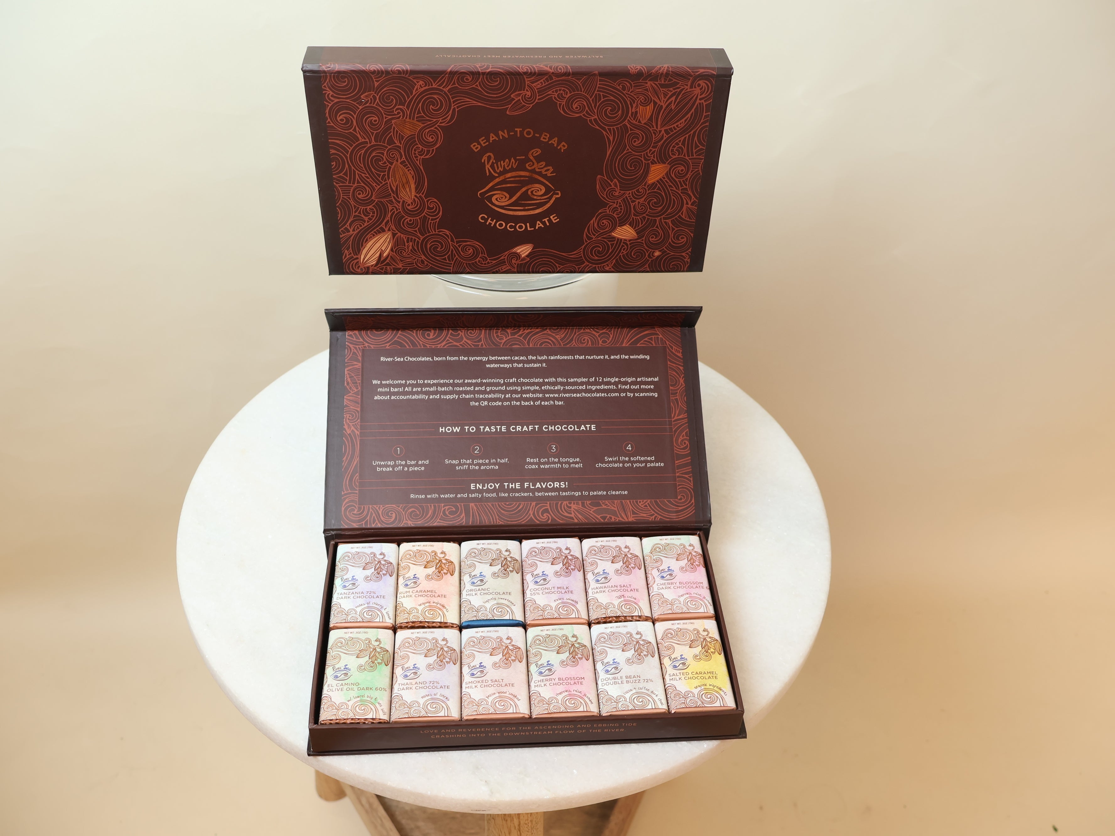 A thoughtfully curated collection of 12 artisan mini chocolate bars crafted by a local chocolatier, River Sea Chocolates. Rich, beautifully made, and perfect for gifting, this sampler adds an extra layer of indulgence to any floral moment.