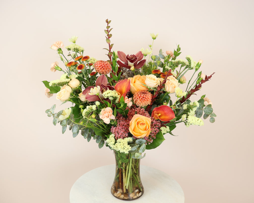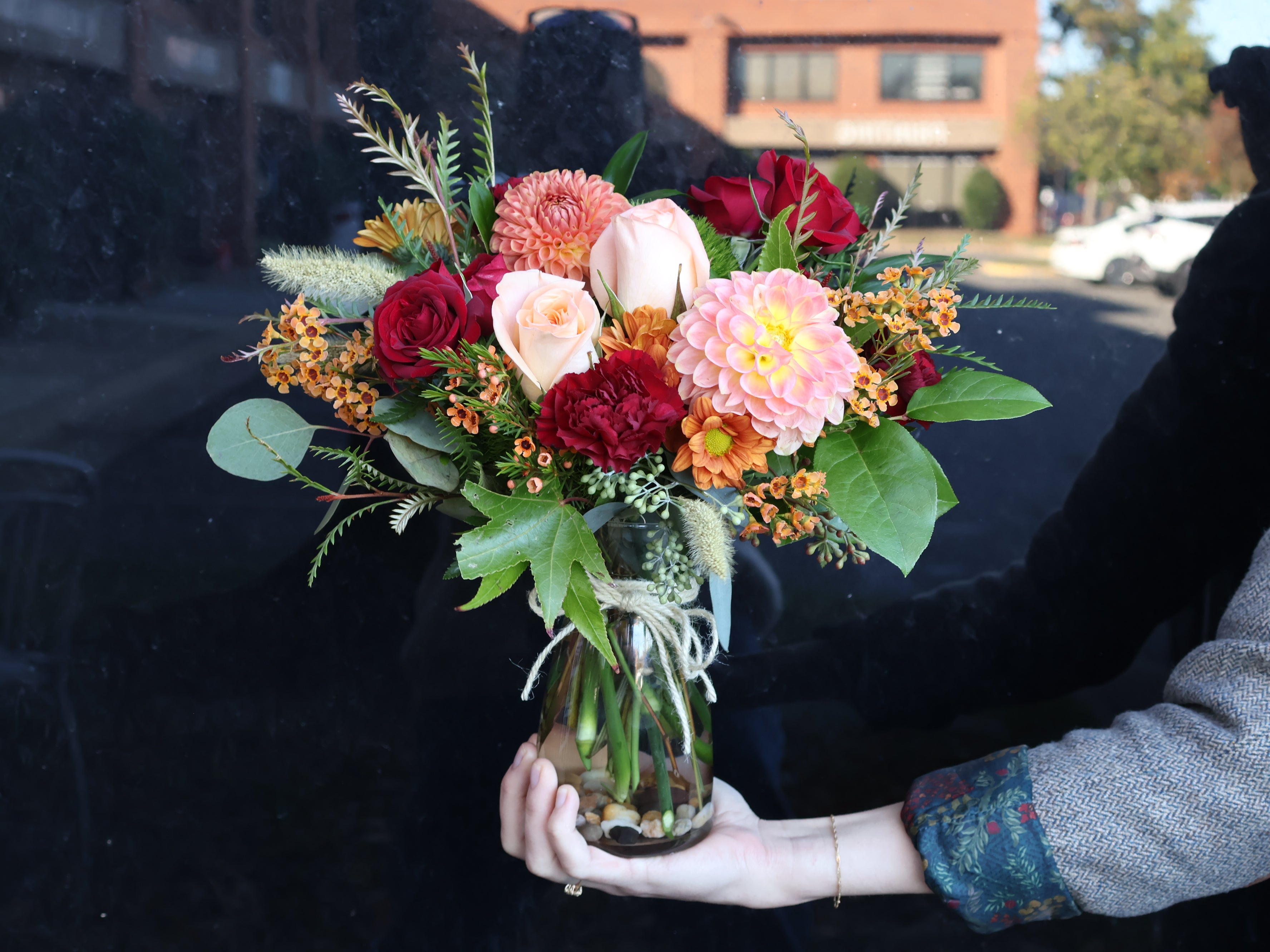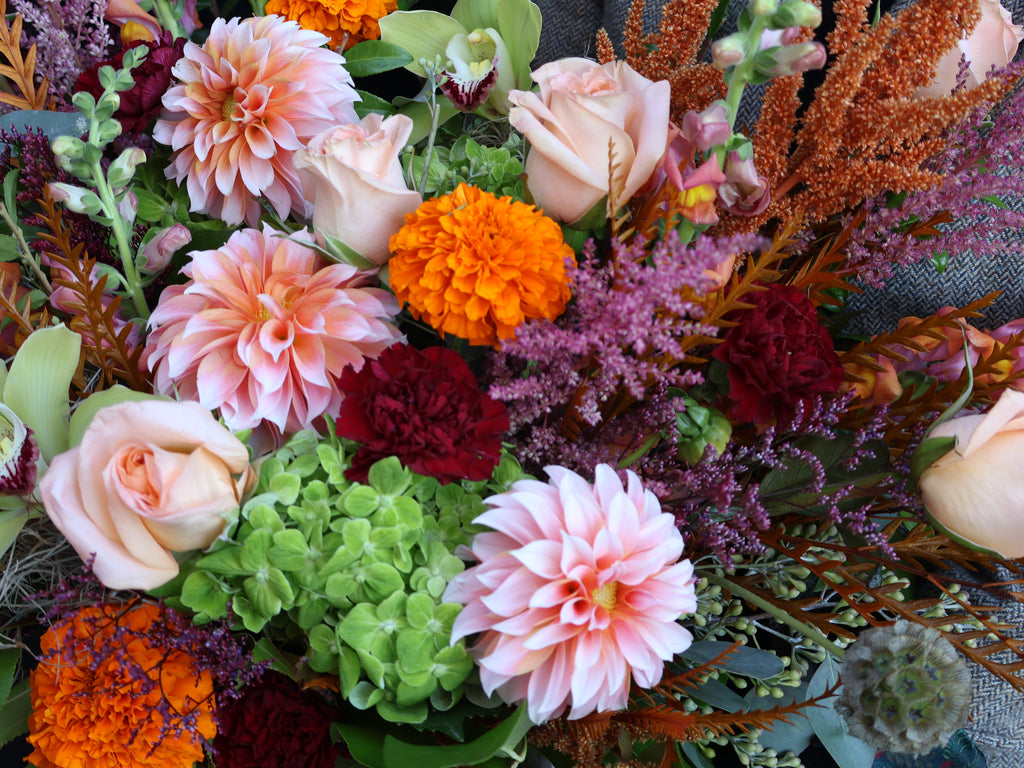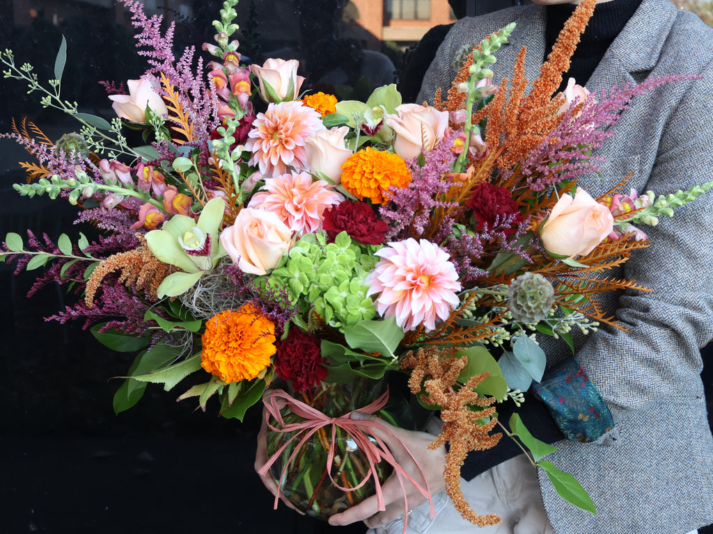 Our Fall Designer’s Choice is the best way to get seasonal, fresh, and uniquely made just for you. The photos here show examples of past arrangements — yours will be different, but just as beautiful.