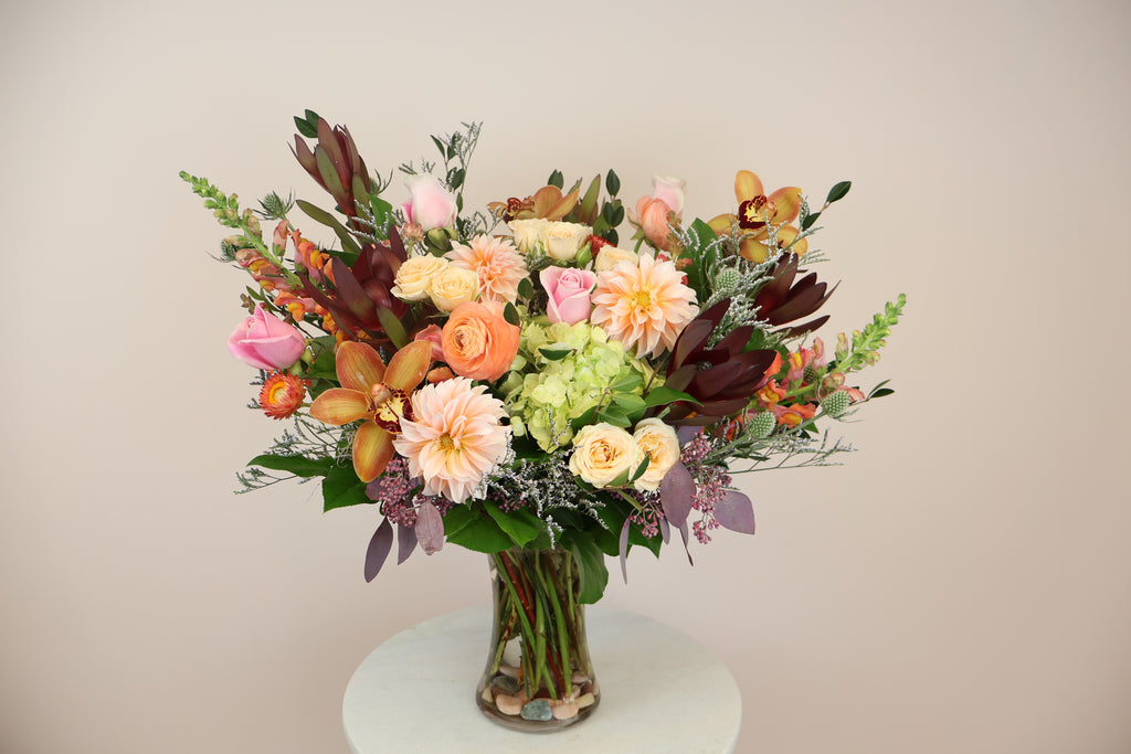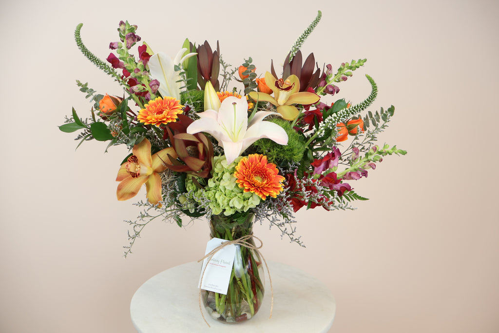 *Note: This is a "designers choice" style arrangement and flower availability changes seasonally. Your arrangement will vary from the photo, but we guarantee it will be fresh, beautiful and fitting for the occasion!