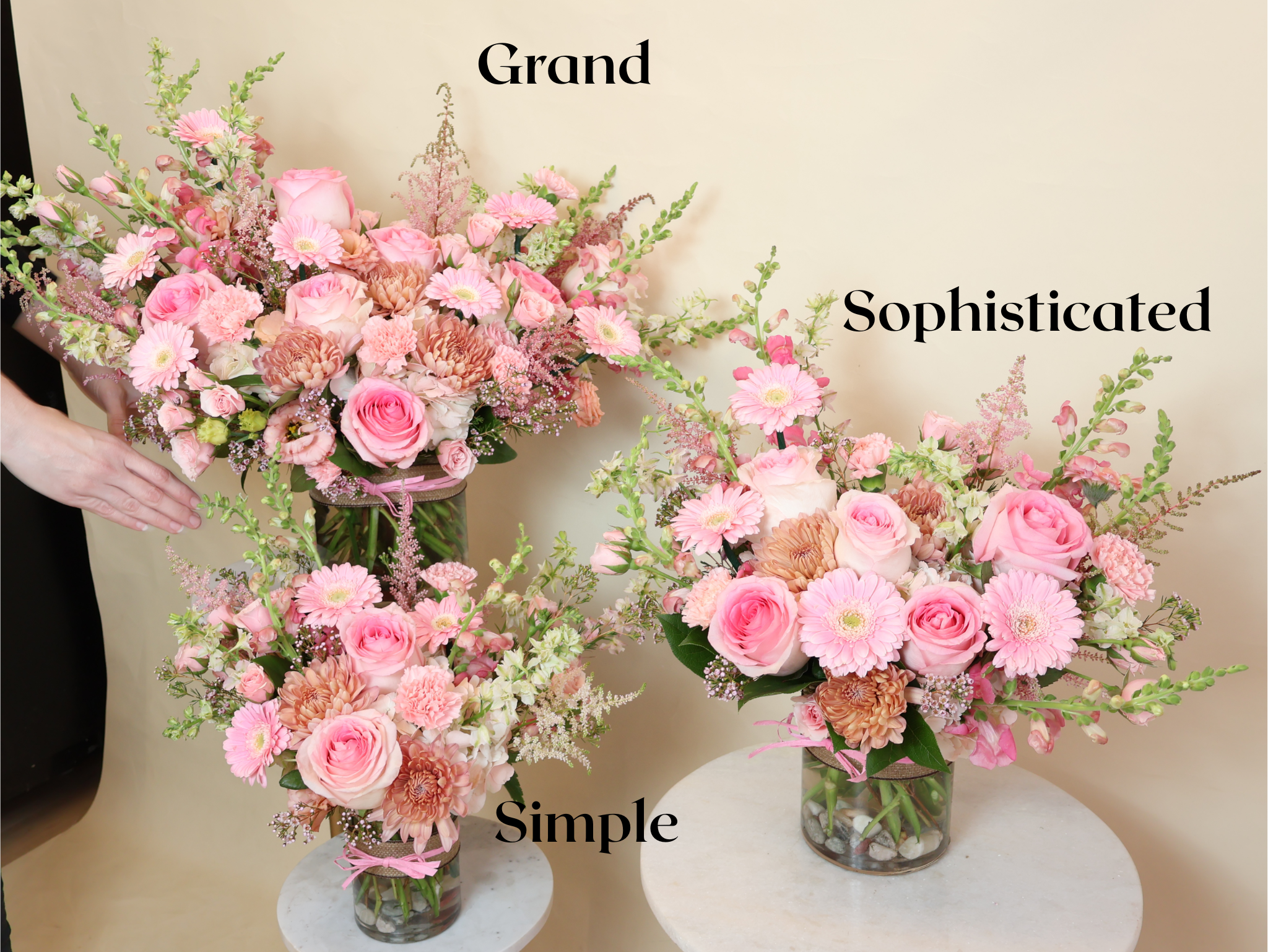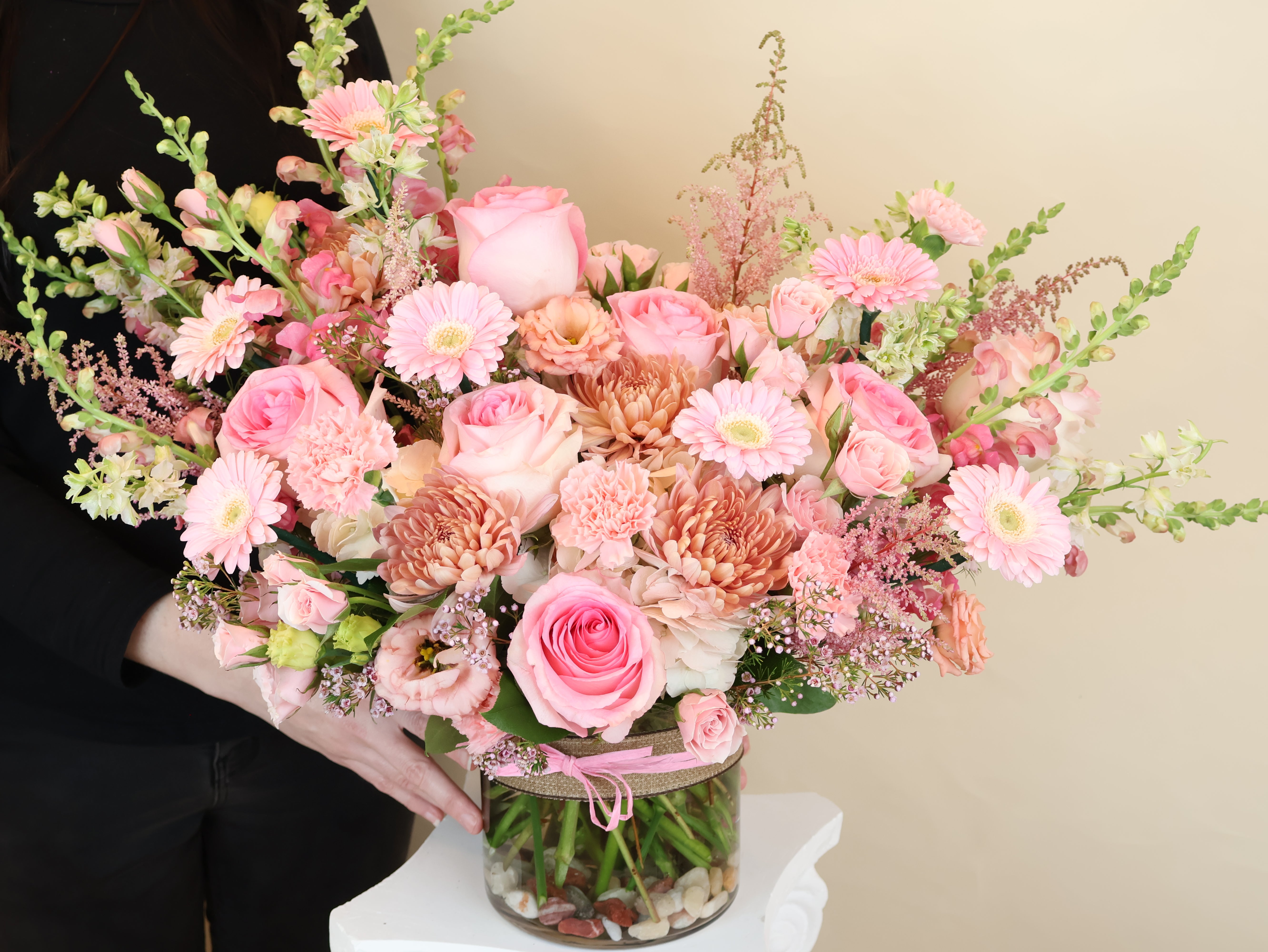 Sometimes one color says it best. Pretty in Pink is a soft, flower-filled mix of all pink blooms layered in shades from blush to bright for a look that’s simple, sweet, and full.