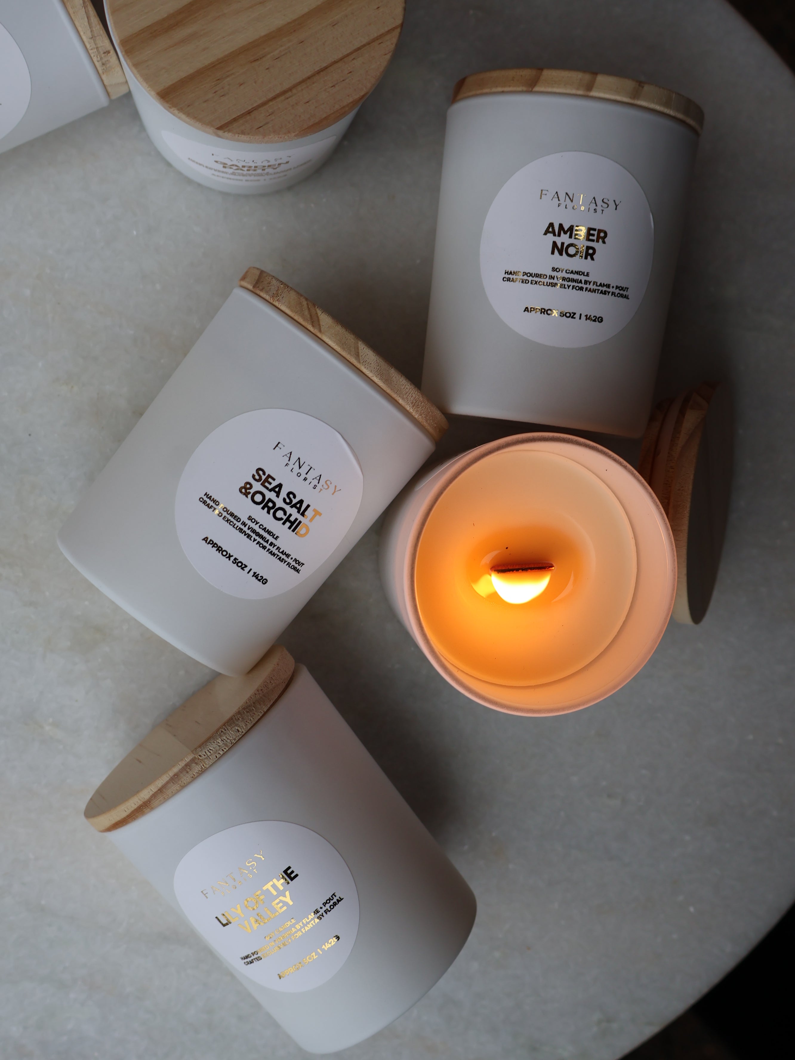 A 5oz hand-poured wood wick candle