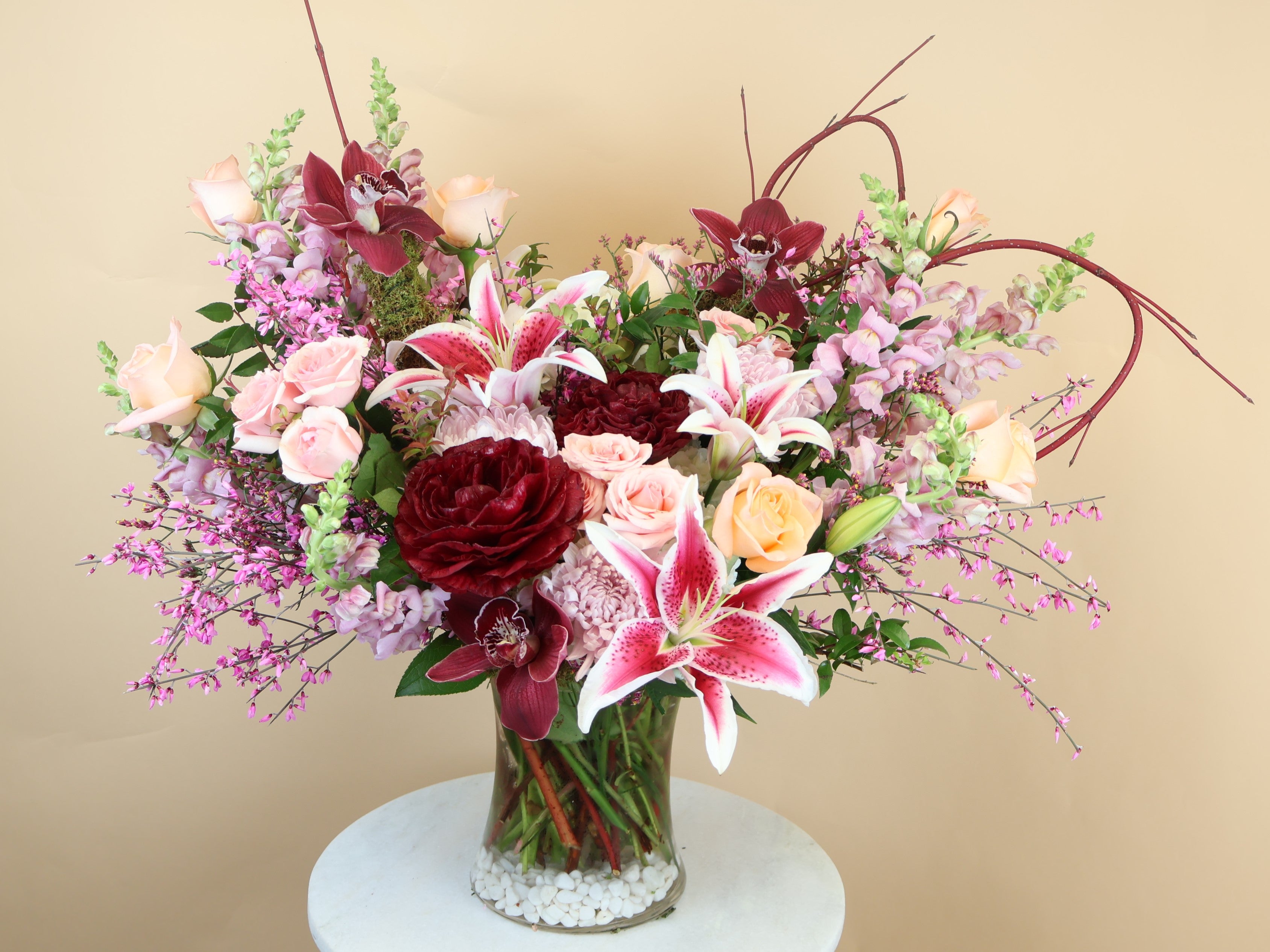*Note: This is a "designers choice" style arrangement and flower availability changes seasonally. Your arrangement will vary from the photo, but we guarantee it will be fresh, beautiful and fitting for the occasion!